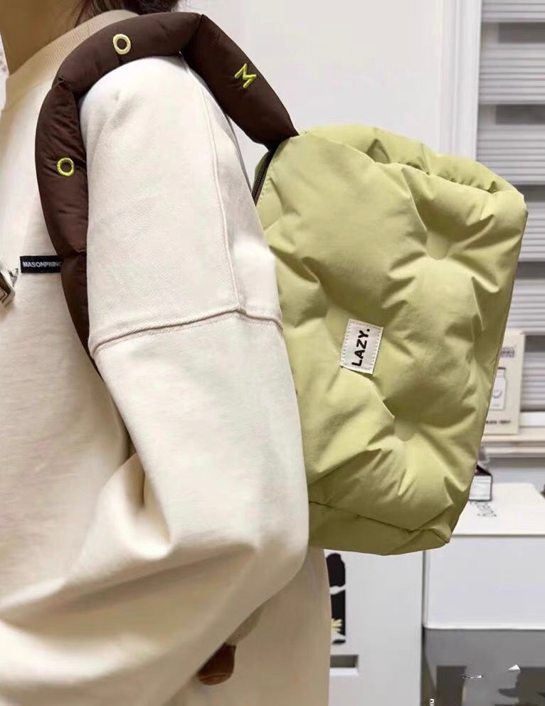 - 1.UNIQUE WOVEN & PADDED DESIGN - simple shape, ultra lightweight comfortable tote,with puffy shoulder bag is made of high quality nylon material, padded with down cotton.